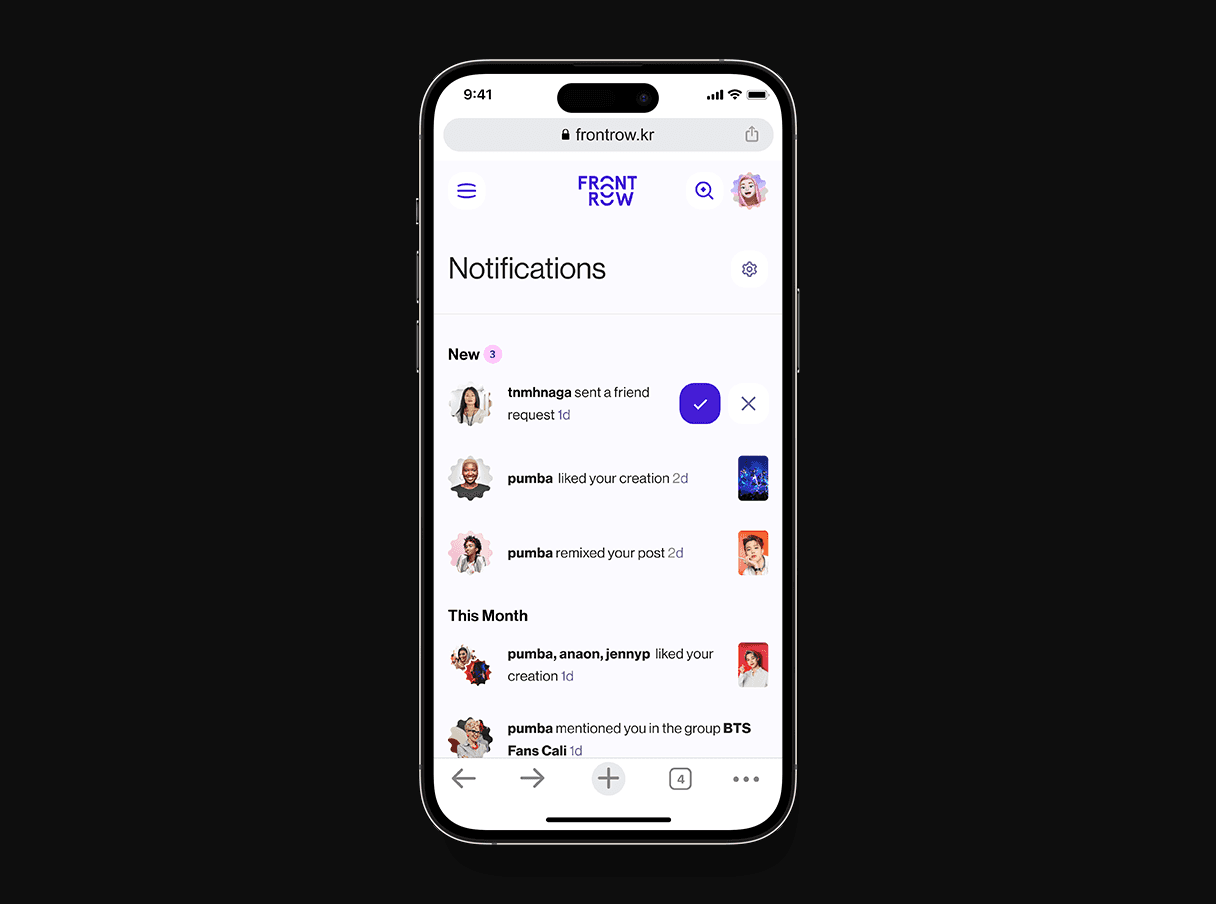 Front Row's journey exemplifies our dedication to user-centric design, evolving from a platform solely focused on NFT collection to a thriving community hub. Through rigorous research and innovative design exploration, we crafted an unparalleled user experience across mobile and desktop platforms. Our commitment to prioritizing user connections and community development sets Front Row apart in the NFT and social networking landscape, shaping the future of digital interactions and engagement.