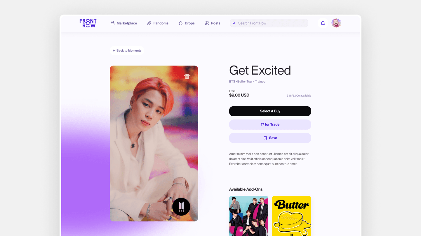 Front Row was designed to be the next-generation NFT and social networking platform that utilizes social networking and gamification features to initiate conversations, encourage sharing, and provide genuine utility for the NFTs traded on the platform.